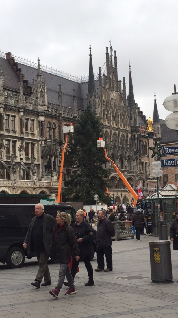 朝の10時くらいにマリアンプラッズに着いたのですが、クリスマスマーケットの準備が始まっていて、ちょうど大きいクリスマスツリーが設置されてるところでした。