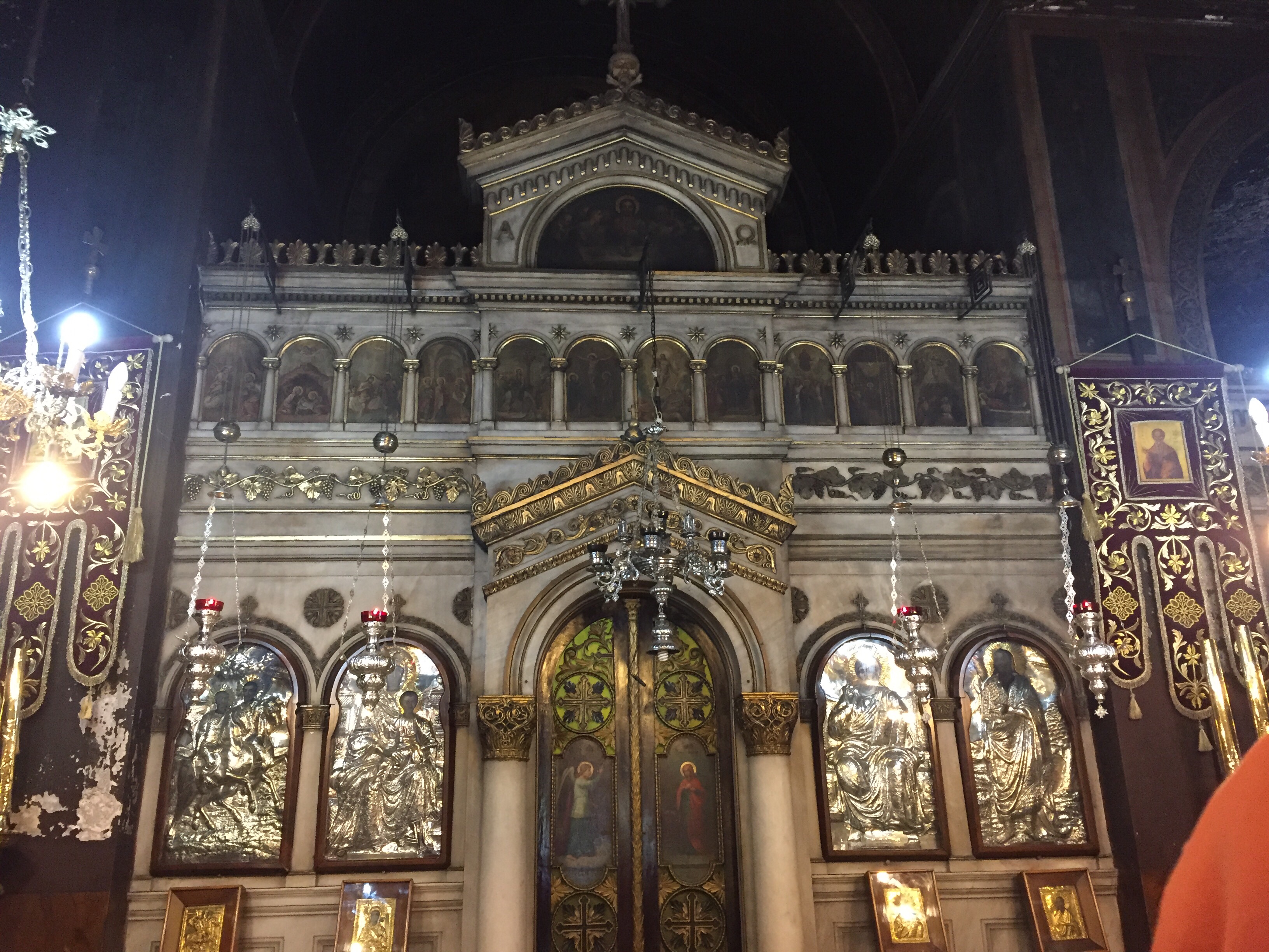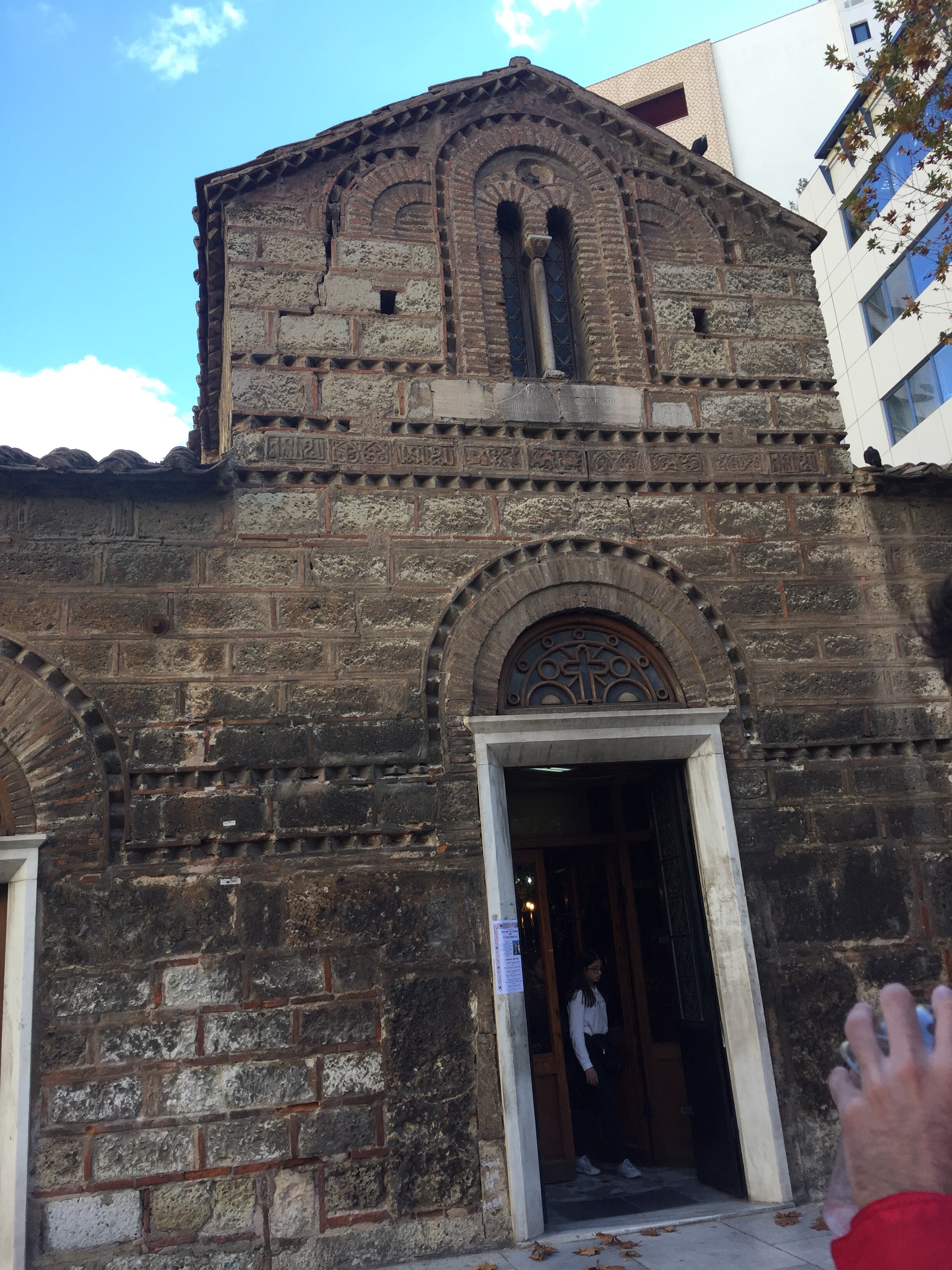 それから小さな教会に行きました。アテネにある古い教会は他の普通の道と比べると何段か低いのですが、それは古いからだそうです。どんどん地位が上がっていったため低く見えるそうです。昔は教会の場所の高さが普通の高さみたいだったです。