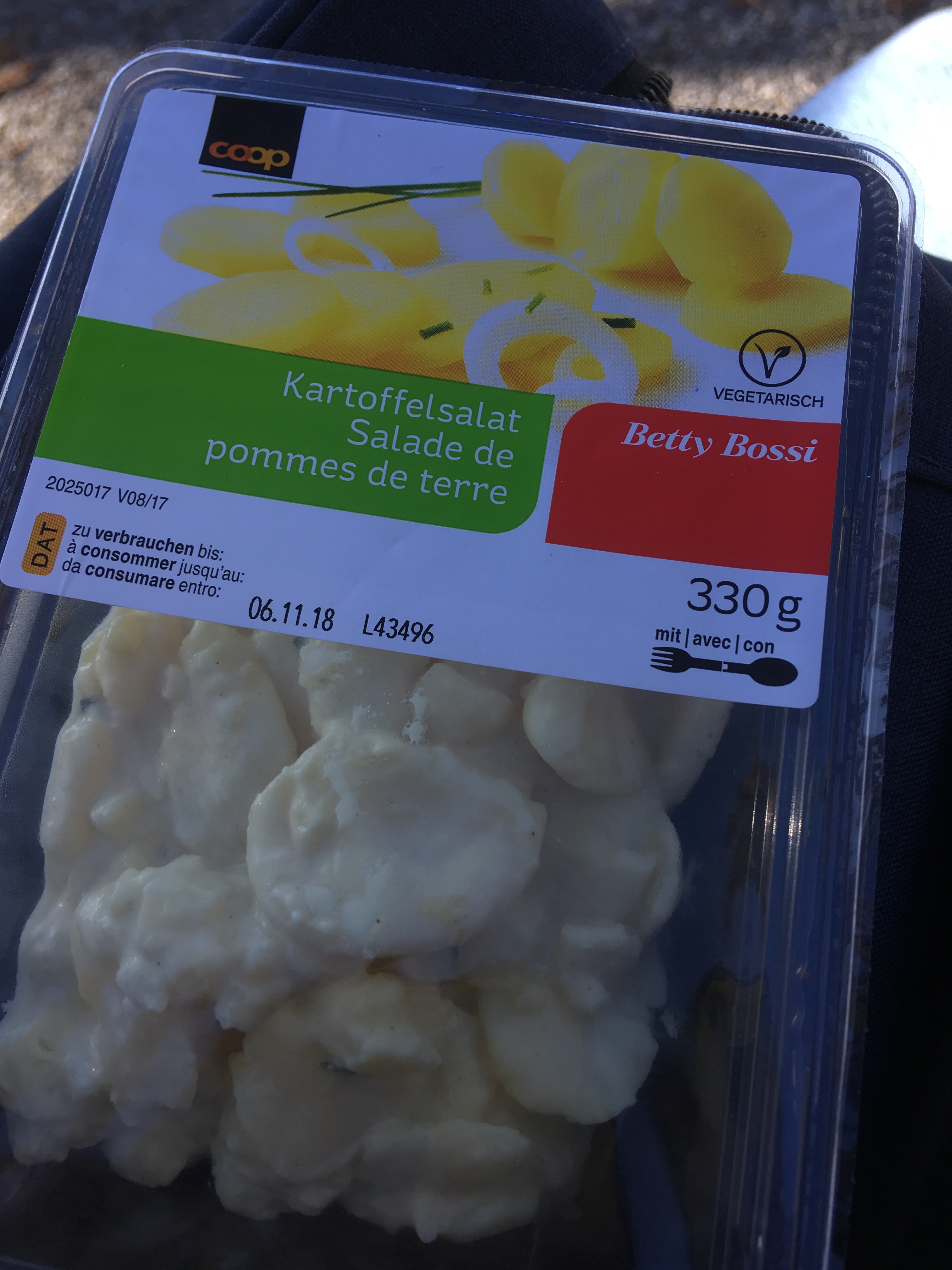 それからお腹が空いたので、食料をゲットしに行きました。レストランとかは絶対高いと思ったので、COOPというスイスでメジャーなスーパーに行ってポテトサラダとクランチバーをゲットしました。